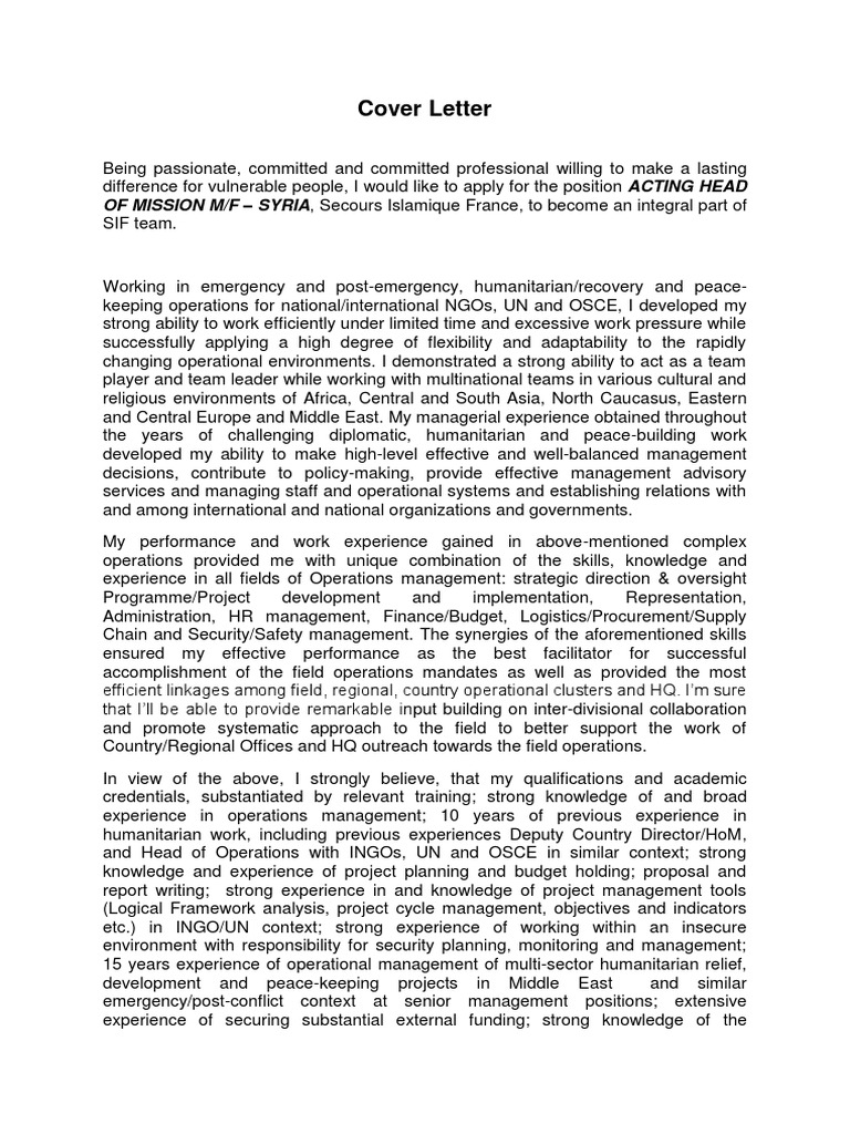 1 from Press ctrl + f or f3 on your keyboard to find a specific word on this page. So for example instead of using dear. It gives life to your resume and allows you to provide important. Job examples humanitarian letter cover. Cover letter examples for all types of professions and job seekers. View a real cover letter for the un full time position, humanitarian program officer. Browse livecareer's professional cover letter examples for inspiration or customize a template to catch the eye of recruiters & hiring managers. Your cover letter is a great opportunity to show a potential employer who you are and why you're the right fit.